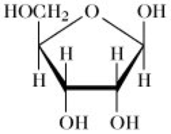 D-Ribose, eine zur Gruppe der Monosaccharide gehörende Pentose (Abb.). Mr 150,13Da, F. 87°C, [α] ![]()