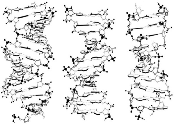 Abb. Desoxyribonucleinsäure. Drei Typen der DNA-Doppelhelix.