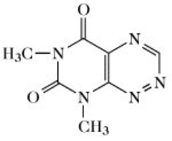 Fervenulin, 6,8-Dimethylpyrimido-5,4-e-1,2,4-triazin-5,7-(6H,8H)-dion, ein durch Streptomyces fervens synthetisiertes Pyrimidinantibiotikum (Mr 193,17Da, F. 178-179°C). Fervenulin (Abb.) zeigt eine dem Toxoflavin analoge Struktur, ist aber weniger toxisch. Es hat ein breites Wirkungsspektrum und wirkt besonders gegen Coccen, gramnegative und phytopathogene Bakterien und gegen Trichomonaden.