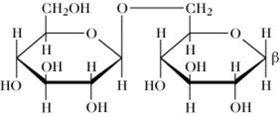 Gentiobiose, ein reduzierendes Disaccharid, das β-1→6-glycosidisch aus zwei Molekülen D-Glucopyranose aufgebaut ist (Abb.). Mr 342,3Da, α-Form: F. 86 °C; β-Form: F. 193°C, [α] ![]()