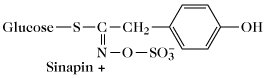 | Sinalbin, Sinapinglucosinalbat, Sinapin-4-hydroxybenzylglucosinolat | Sinapis alba (weißer und gelber Senf) | ![]() | |