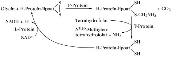 Glycin + THF + NAD+ → N5,10-Methylen-THF + NH3 + CO2 + NADH + H+. [K. Fujiwara et al. J. Biol. Chem. 259 (1984) 10.664-10.668]