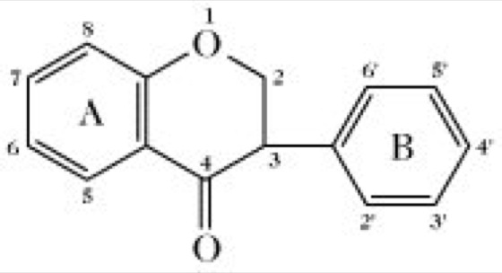 Isoflavanon, ein Isoflavonoid mit dem in der Abb. dargestellten Ringsystem. Es sind relativ wenige natürlich vorkommende I. bekannt. Wie andere Isoflavonoidesind auch die I. auf verschiedene Unterfamilien der Leguminosen beschränkt. Beispiele: Padmakastein (5,4'-Dihydroxy-7-methoxyisoflavanon, Rinde von Prunus puddum), Ferreirin und Homoferreirin (5,7,6'-Trihydroxy-4'-methoxy- und 5,7-Dihydroxy-4',6'-dimethoxyisoflavanon, aus Kernholz von Ferreirea spectabilis), Sophorol(7,6'-Dihydroxy-3',4'-methylendioxyisoflavanon, Maakia amurensis). [The Flavonoids, J.B. Harborne, T.J. Mabry u. H. Mabry, Hrsg., Chapman and Hall, 1975]