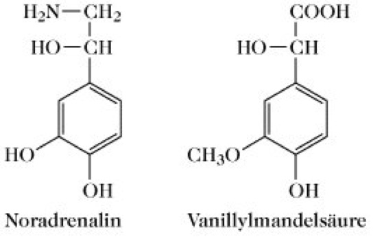 Abbau und Ausscheidung von N. erfolgen nach O-Methylierung und oxidativer Desaminierung durch eine Monoaminoxidase zu 3-Methoxy-4-hydroxymandelsäure (Vanillylmandelsäure, VMA, engl. vanillylmandelic acid). VMA ist in den peripheren Teilen des Körpers und im Harn der Hauptmetabolit von Noradrenalin. Der VMA-Gehalt im Harn stellt eine Kennzahl für die parasympathische Nervenfunktion dar und wird zur Diagnose von Tumoren herangezogen, die N. oder Adrenalin produzieren. Ascorbat-Shuttle.