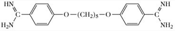 StartseiteLexikaLexikon der BiochemieAktuelle Seite: PentamidinLexikon der Biochemie: Pentamidinvorheriger Artikelnächster ArtikelPentamidin, ein als Mittel bei Trypanosomeninfektionen verwendetes Bisamidin (Abb.).PentamidinCopyright 1999 Spektrum Akademischer Verlag, Heidelberg