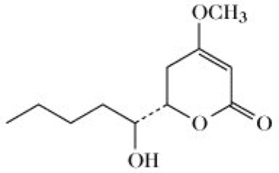 Pestalotin, ein Stoffwechselprodukt aus Kulturfiltraten des Pilzes Pestalotia cryptomeriaecola Sawada (Abb.; Mr 214,25Da, F. 88-88,5°C). Es wirkt als Synergist von Gibberellinen.