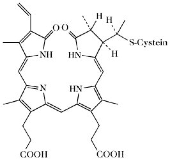 Phytochrome. Chromophor des Phytochroms. Es ist strukturell mit dem Chromophor von Phycocyanin (Phycobilisom) verwandt.