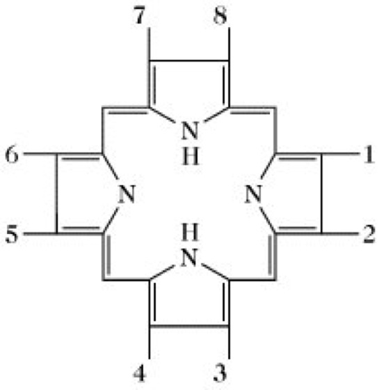 Porphyrinogene (die Zwischenprodukte der Porphyrinbiosynthese sind) stellen P. dar, bei denen sowohl die Pyrroleninstickstoffe als auch alle Brückenmethenkohlenstoffe Wasserstoffatome tragen.
