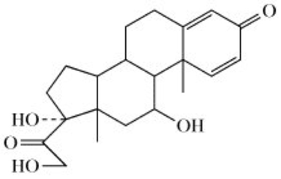 Prednisolon, 1,2-Dehydrocortisol, 11β,17α,21-Trihydroxypregna-1,4-dien-3,20-dion (Abb.), ein Derivat des Cortisols, das durch dessen chemische oder mikrobielle Dehydrierung hergestellt wird. P. wird wie das entsprechende 1,2-Dehydroderivat von Cortison, das Prednison (1,2-Dehydrocortison), als Heilmittel hoher antirheumatischer und antiallergischer Aktivität angewandt, z.B. gegen Asthma, Rheuma und Ekzeme.
