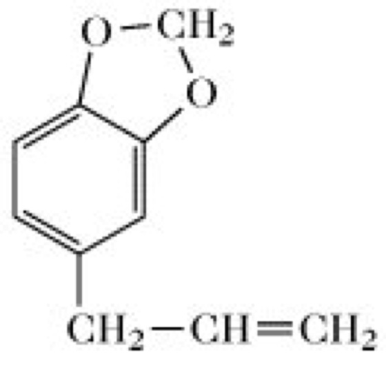 Safrol, 4-Allyl-1,2-(methylendioxy)benzol, eine farblose, leicht bewegliche Flüssigkeit mit herbfrischem Geruch; F. 11,2°C, Sdp. 234,5°C, n ![]()