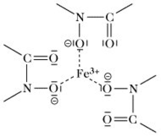 S. sind spezifische Liganden, die von Mikroorganismen besonders unter Eisenmangelbedingungen verstärkt synthetisiert und in das Nährmedium ausgeschieden werden. Sie gehören dem Catecholtyp (bei anaeroben Mikroorganismen) oder dem Hydroxamattyp (bei aeroben Mikroorganismen) an. Das typische Merkmal der S. ist ein zentraler Eisen(III)-trihydroxamat-Komplex (Abb.). Das Komplexbildungsvermögen ist spezifisch für Fe3+.