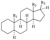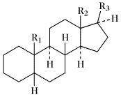 | 5α-Androstan (früher Testan); 5β-Androstan (früher Ätiocholan) | CH3 | CH3 | H |