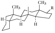 | 5α-Cholestan; 5β-Cholestan (früher Koprostan) | CH3 | CH3 | (20R)-CH(CH3)CH2CH2CH2CH(CH3)2 |