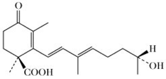 Trisporsäuren, Fungus-Sexualhormone, strukturähnliche C18-Terpencarbonsäuren aus niederen Pilzen, wie Blakeslea trispora oder Mucor mucedo. Die T. werden von den (+)-Stämmen nur dann gebildet, wenn (+)- und (-)-Stämme heterothallischer Pilze (Ordnung Mucorales) gemischt werden. Die (+)-Stämme wandeln dabei ein Pro-Hormon der (-)-Stämme in T. um. T. induzieren die Ausbildung von Geschlechtsorganen (Zygophoren) in den (-)-Zellen. Damit sind die T. den pflanzlichen Sexualhormonen zuzuordnen. Ihr wichtigster Vertreter ist die T. C (Abb.), Mr 306Da, die in Konzentrationen von 20 μg die Zygophoreninduktion auslösen kann. Abweichend vom üblichen Biosyntheseweg der Diterpene entstehen die T. durch Spaltung von β-Carotinen.