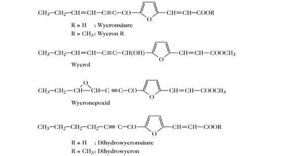 Wyeronsäure. Wyeronsäure und einige Acetylenderivate, von Vicia faba als Reaktion auf eine Infektion gebildet. Der Anteil der verschiedenen Verbindungen hängt vom infizierten Gewebe, der Art des infizierenden Pilzes und der Zeit, die seit der Initiierung der Synthese verstrichen ist, ab.