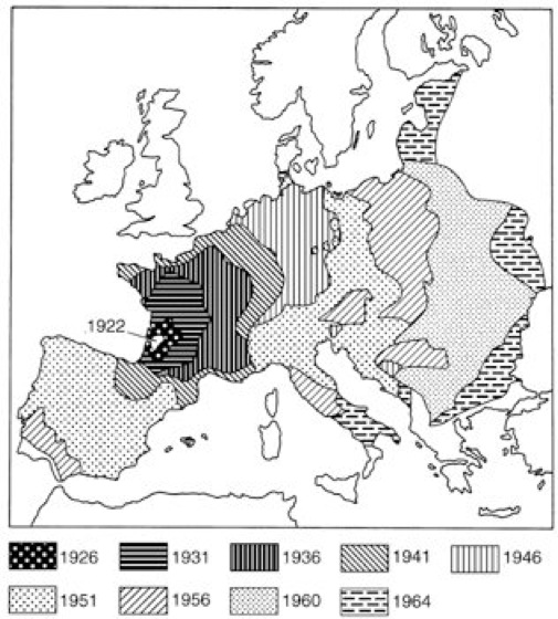 Ausbreitung Ausbreitung des Kartoffelkäfers (Leptinotarsa decemlineata) in Europa von 1922 bis 1964