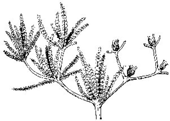 Bennettitopsida, Bennettitatae, ausgestorbene Klasse der Fiederblättrigen Nacktsamer (Cycadophytina), die im Mesophytikum reich entfaltet war. Sie unterschieden sich von den Samenfarnen (Lyginopteridopsida) und den Cycadopsida vor allem durch die extrem vereinfachten Fruchtblätter (Fruchtblatt). Bedeutend ist vor allem die Unterklasse bzw. Ord. Bennettitales, die zum ersten Mal im Pflanzenreich echte Zwitterblüten mit einer Blütenhülle (Perianth) ausbildeten. Die bekanntesten Gatt. sind Williamsonia, Wielandiella ( vgl. Abb. ), Williamsoniella und Cycadeoidea.
