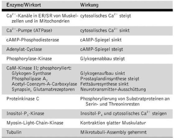 Calmodulin: Auswahl einiger von Calmodulin regulierter Enzyme bzw. von Calmodulin beeinflusster Zellprozesse