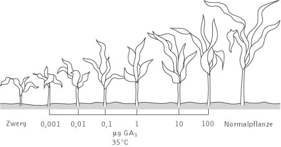 Diese und bereits früher erwähnte G.-Effekte haben zu zahlreichen kommerziellen Anwendungen von G. geführt. So kommt G. eine große Bedeutung bei der Fruchtproduktion zu, indem sie z.B. das Stängelwachstum bei kernlosen Trauben so fördern, dass die Beeren nicht zu eng wachsen und ihre erwünschte Größe erreichen. In ähnlicher Weise werden G. auch beim Bierbrauen eingesetzt, um die Malzbildung zu beschleunigen. Andererseits werden G.-Antagonisten als Hemmstoffe der G.-Synthese wie z.B. Paclobutrazol eingesetzt, um das Streckungswachstum von Getreide und Schnittblumen zu verringern. ( vgl. Abb. )