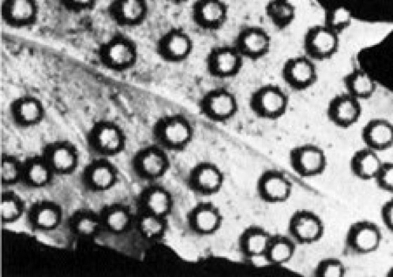 Sorus, Plural Sori, in jüngerem Stadium von einem dünnen Häutchen (Indusium) überdeckte Gruppe von Sporangien (Sporangium) auf der Blattunterseite der Pteridophyta. Sie können frei oder von Hüllen (eingekrümmter Blattrand oder hautartige Auswüchse der Blattepidermis = Indusien oder Schleier) bedeckt sein. Dieses Merkmal und die Verschiedenartigkeit von Gestalt und Anordnung sind unter anderem wichtige Merkmale für die Farnsystematik. ( vgl. Abb. )