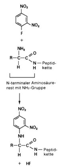 Markierung der N-terminalen Aminogruppe eines Peptids durch 2,4-Dinitrofluorbenzol