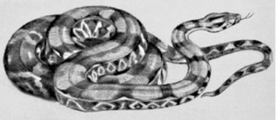 Abgottschlange, Königsschlange, Boa constrictor,Boaschlange mit mehreren Unterarten; schöne, kontrastreich gezeichnete Riesenschlange (meist dunkelbraune, zackige Flecken auf gelbbraunem Grund; vgl. Abb. ), bis 4,5 m Länge und 60 kg Gewicht; von Mittel- bis zum tropischen Südamerika verbreitet; lebendgebärend; vorwiegend Bodenbewohner, besonders in Gebirgswäldern; tötet Beutetiere (kleine bis mittelgroße Säugetiere, Vögel und Echsen) durch Umschlingen und Erwürgen; für den Menschen ungefährlich. Gelegentlich werden kleinere Abgottschlangen durch den Bananenhandel nach Europa verschleppt. Reptilien III, Südamerika II.