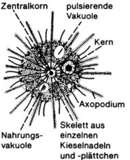 Acanthocystis w [von *acantho –, griech. kystis = Blase, Schlauch], Gattung der Sonnentierchen; die Zelle ist von einem Kieselskelett aus radiären Nadeln und tangentialen Plättchen umgeben ( vgl. Abb. ). Vertreter der Gattung leben in Tümpeln, Gräben und Seen, auch in Torfmoosen.