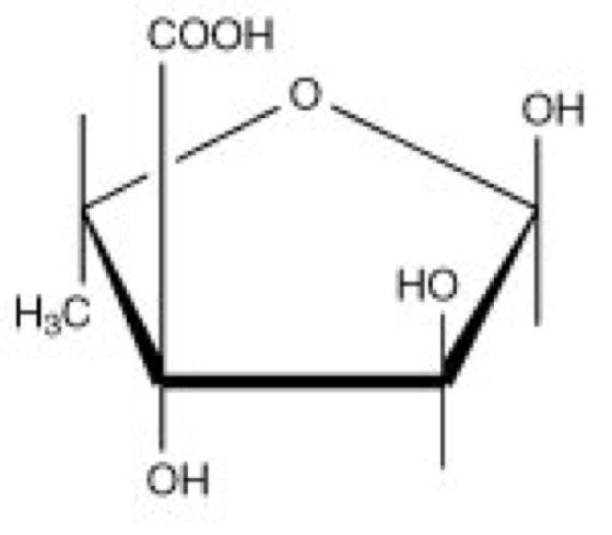 Acerinsäure, 3-C-Carboxy-5-deoxy-L-Xylose, saurer Zucker, der aus Zellwänden von Zellsuspensionskulturen von Berg-Ahorn(Acer pseudoplatanus) isoliert wurde. Acerinsäure ( ä vgl. Abb. ) ist ein Bestandteil von Rhamnogalacturonan II der Pektinfraktion dikotyler Pflanzen.