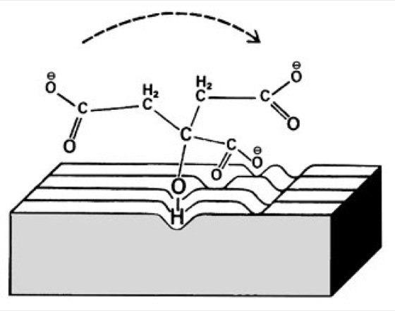 Aconitase-Reaktion: Die asymmetrisch gebaute Enzymoberfläche prägt dem symmetrisch gebauten Substratmolekül seine eigene Asymmetrie auf (asymmetrische Synthese).