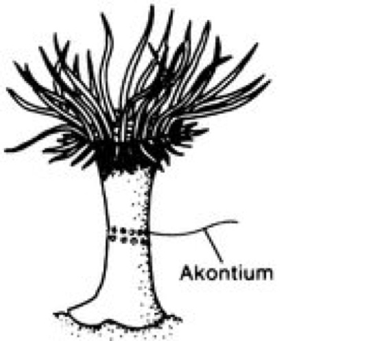 Aiptasia w,Seerosen-Gattung der Mesomyaria, deren Vertreter seitlich auf der Rumpfwand liegend, mit dem Aboralpol voraus kriechen können; zur Abwehr werden Akontien abgeschossen. Aiptasia diaphana ( vgl. Abb. ) ist eine häufige, bis 5 cm große Mittelmeerart mit braunem Körper und weißen Akontien; sie bildet oft Rasen in 1–2 m Tiefe, besonders in Häfen. Seespinnen.