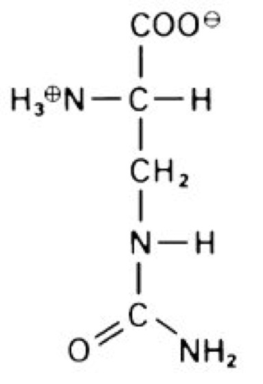 Albizziin s, 7α-Amino-β-ureidopropionsäure, eine nichtproteinogene Aminosäure ( vgl. Abb. ), die besonders in der Pflanzengattung Albizia (Hülsenfrüchtler) vorkommt. Albizziin wirkt bei den Enzymen Glutaminase und Glutaminyl-tRNA-Synthetase als Antagonist von Glutamin. Carbamylphosphat.