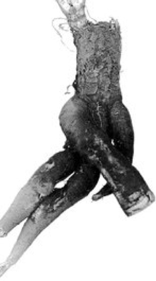 1 Fruchtende Pflanze, 2 Wurzel, 3 eine Darstellung aus "Hortus sanitatis" (deutsch 1485)