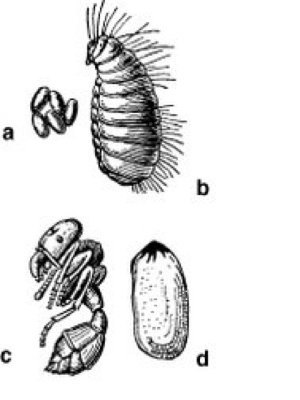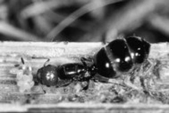 Die Fortpflanzung erfolgt durch die bei uns meist im Laufe des Sommers auftretenden, meist geflügelten Geschlechtstiere. Bei starken Völkern kommen sie oft in Schwärmen vor und sammeln sich an exponierten Geländepunkten. Die Geschlechterfindung erfolgt über Sexuallockstoffe beider Geschlechter. Lasius- und Camponotus-Arten versprühen nach dem Verlassen des Nestes ihre Mandibeldrüsensekrete (Terpene und Terpenderivate), Königinnen geben aus ihren Gift- und Dufourschen Drüsen andere Lockstoffe ab, die dann die Männchen stimulieren. Die Begattung erfolgt oft während eines Hochzeitsflugs, aber auch am Boden. Wie oft einzelne Weibchen begattet werden, ist in der Regel nicht bekannt. Nach der Begattung stirbt das Männchen; die potentielle Königin wirft ihre Flügel ab und beginnt mit der Nestgründung. Bei Ameisen kommen drei unterschiedliche Typen einer Nestgründung ( vgl. Abb. ) vor. 1) Unabhängige Nestgründung: begattete Weibchen gründen selbst ein eigenes neues Nest; dieser Typ ist mit Varianten die häufigste Form (in Mitteleuropa bei 65% der Arten): Ein einziges begattetes Weibchen sucht sich einen Schlupfwinkel, legt eine kleine Höhlung (claustra) an und legt einen Schub Eier. Die Larven werden mit Kropfnahrung gefüttert, die Nahrung stammt entweder aus den eigenen Körperreserven oder wird (selten) durch Nahrungssuche herbeigeschafft. Mit den ersten geschlüpften Arbeiterinnen wird langsam der Staat gegründet. Es können auch mehrere Königinnen zusammen ein Nest gründen und alle Eier legen. Der später resultierende Staat ist dann entweder polygyn oder durch Kämpfe zwischen den Königinnen schließlich monogyn. 2) Abhängige Nestgründung: begattete Königinnen ziehen nicht allein die Brut groß, sondern gehen dazu in andere, bereits bestehende Staaten. Auch gibt es zahlreiche Varianten: a) Ein abhängiges Weibchen geht zu einem unabhängigen Weibchen einer anderen Art; letzteres zieht dann beide Bruten groß. Das Ergebnis ist ein Mischvolk beider Arten. Dies bleibt entweder so, oder die abhängige Königin tötet die unabhängige, so daß das Volk schließlich nur noch aus Arbeiterinnen der abhängigen Art besteht. Solche permanenten Mischvölker treten zwischen der Säbelameise (Strongylognathus testaceus) und der Rasenameise (Tetramorium caespitum;Knotenameisen) auf. Nur zeitweise gemischte Völker dieser Genese beobachtet man zwischen Formica sanguinea und Formica fusca (Schuppenameisen) oder monogynen Nestern von Formica rufa. b) Ein abhängiges Weibchen läßt sich vom Volk derselben Art adoptieren: bei polygynen Völkern von Formica rufa. c) Ein abhängiges Weibchen dringt in ein artfremdes Nest ein und tötet dessen Königin: Formica sanguinea bei Formica fusca, auch einige Lasius-Arten. d) Ein abhängiges Weibchen raubt die Puppen einer anderen Art; die schlüpfenden Arbeiterinnen dienen als Sklaven: Formica sanguinea bei Formica fusca. e) Ein abhängiges Weibchen dringt in ein artfremdes Nest ein, tötet alles außer dessen Puppen und zum Teil dessen große Larven: Sklavenjäger Harpagoxenus sublaevis bei Leptothorax-Arten. f) wie der Fall c), aber artfremde Brut wird durch Raubzüge ständig erneuert, da die Sklavenhalter aufgrund ihrer Mandibelform nicht in der Lage sind, selbst zu fressen oder Nestbautätigkeiten auszuführen: Amazonenameise Polyergus bei Formica fusca und Formica rufibarbis oder Epimyrma ravouxi bei Leptothorax-Arten (Knotenameisen). g) Echter Brutparasitismus: der arbeiterinnenlose Sozialparasit Anergates atratulus (Knotenameisen) geht in königinnenlose Nester von Tetramorium-Arten (Rasenameisen) hinein und legt dort sehr viele Eier, die von den Wirtsameisen großgezogen werden. 3) Nestteilungen: Bildung von Tochterkolonien (Soziotomie) tritt bei individuenstarken polygynen Arten auf. Hier sondert sich ein Teil des Volkes mit einer oder mehreren Königinnen ab. Die Neugründungen (Ableger) können noch lange über Straßen in Verbindung stehen. Die Larven ( vgl. Abb. ) sind madenförmig, ohne Beine und Augen, weichhäutig, weiß bis gelblich. Die Ernährung erfolgt ausschließlich durch die Arbeiterinnen durch Kropffütterung; larvale Entwicklung über 3–5 Stadien von 4 Wochen bis 2 oder 3 Jahre. Die Verpuppung erfolgt bei ursprünglicheren Gruppen (z. B. Schuppenameisen) in einem Gespinstkokon (fälschlich als "Ameiseneier" bezeichnet), bei abgeleiteten Formen ohne Kokon.