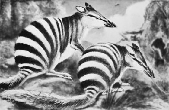 Ameisenbeutler, Spitzbeutler, Myrmecobiidae, Familie der Beuteltiere mit nur 1 Art, dem Numbat (Myrmecobius fasciatus), ein rattengroßes Beuteltier mit buschigem Schwanz ( vgl. Abb. ), das im Süden und Südwesten Australiens beheimatet ist. Der Ameisenbeutler repräsentiert innerhalb der Ordnung der Beuteltiere den Lebensformtypus des Ameisenfressers und Termitenfressers und zeigt daher ebenfalls (wie z. B. die Ameisenbären innerhalb der placentalen Säugetiere) das Phänomen der Gebißrückbildung (hier: 48 bis 52 kleine, schwache, rückgebildete Zähne) und eine lange, dünne, weit vorstreckbare Zunge zum "Angeln" der Insekten. Das Weibchen ist deutlich kleiner als das Männchen und besitzt keinen Beutel. Die im Vergleich zu placentalen Säugern gleichsam noch in embryonalem Entwicklungszustand zur Welt kommenden Jungen (meist 2 bis 4) klammern sich, solange sie noch an den Zitzen mitgeführt werden (etwa 4 Monate lang), an einem struppigen Haarfeld fest, das die 4 Zitzen umgibt; anschließend werden sie noch 2 Monate lang im Nest gesäugt. Über die Lebensweise der Ameisenbeutler gibt es kaum Freilandbeobachtungen; aus Gefangenschaftsbeobachtungen weiß man jedoch, daß die Ameisenbeutler im Gegensatz zu den meisten anderen Beuteltieren tagaktive Tiere sind. Ihre Existenz ist durch Landkultivierung (d. h. Beseitigung von termitenbefallenem Totholz) und durch die Ausbreitung der landfremden Füchse und Dingos (Raubfeinde) stark gefährdet. Beuteltiere; Adaptive Radiation .