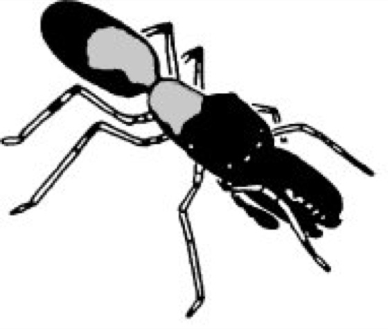 Ameisenspinne, 1) Myrmarachne, Gattung der Springspinnen. In ganz Europa ist Myrmarachne formicaria ( vgl. Abb. ) weit verbreitet, deren Habitus einer Ameise zum Verwechseln gleich ist; auch die Bewegung ist einer Ameise ähnlich, da die Tiere das vordere Beinpaar stets anheben und als "Fühler" einsetzen. Die Männchen haben riesige Chelicerengrundglieder. 2)Ameisenspinnen.