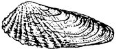 Amerikanische Bohrmuschel, Petricola pholadiformis, Art der Blattkiemer, eine Muschel mit dünner, langgestreckter, weißer Schale mit radiären Rippen und konzentrischen Streifen ( vgl. Abb. ); die Skulptur bildet vorn raspelartige Leisten, mit deren Hilfe mechanisch in Ton und Torf gebohrt wird; aus ihrer Heimat an der atlantischen Küste Nordamerikas wurde sie um 1890 wahrscheinlich mit importierten Austern an die Kanal- und Nordseeküsten verschleppt, wo sie jetzt die häufigste Flachwasser-Bohrmuschel ist. Bohrmuscheln.