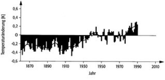 Anthropogene Einflüsse:Obgleich schon im alten China und während des Römischen Reiches durch landwirtschaftliche Aktivitäten wie Brandrodung und großflächige Waldabholzungen erhebliche menschliche Einflüsse auf die Atmosphäre ausgeübt wurden, blieben deren Auswirkungen doch im wesentlichen regional beschränkt. Erst seit Beginn der Industrialisierung während des 18. Jahrhunderts weiteten sich menschliche Einflüsse auf die Atmosphäre zunehmend auf globaler Ebene aus. Am Anfang standen dabei die Emissionen aufgrund der Stahlerzeugung und der Verbrennung von Kohle sowie der sich entwickelnden Landwirtschaft im Vordergrund. Hinzu kamen später vielfältige atmosphärische Schadstoffeinträge (Luftverschmutzung) aufgrund der Entwicklung der chemischen Industrie, des motorisierten Verkehrs sowie extensiver Landwirtschaft. Eine Besonderheit dieser anthropogenen Emissionen ist vor allem, daß die dadurch bedingten atmosphärischen Veränderungen in einer sehr viel kürzeren Zeitspanne erfolgten als dies von paläoklimatischen Schwankungen bekannt ist. Dies erschwert die Beurteilung möglicher Folgen, da atmosphärische Rückkopplungsprozesse mit verschiedenen Zeitkonstanten berücksichtigt werden müssen. Außerdem erfolgte vielfach die Emission von Substanzen, die keine natürlichen Quellen haben und deren Auswirkungen auf die Atmosphäre oftmals völlig unbekannt waren. Ein prominentes Beispiel hierfür ist die Emission von Fluorchlorkohlenwasserstoffen (FCKWs), die schließlich, weitab von ihren troposphärischen Quellen, zum Abbau der stratosphärischen Ozonschicht führten (Ozonloch). Der rasche Anstieg der anthropogen verursachten Emissionen von Kohlendioxid und Methan ist in der Abb. dargestellt ( ä vgl. Abb. ). Diese und weitere Emissionen führen zu einer zunehmenden Verstärkung des natürlichen Treibhauseffekts in der Atmosphäre. Als Folge davon ist mit einer Erwärmung der Atmosphäre zu rechnen, deren Ausmaß noch Gegenstand intensiver Forschungen ist, die jedoch vermutlich im Bereich von 1–5 °C in den nächsten 50–100 Jahren liegen dürfte. Anzeichen dafür sind bereits in der Entwicklung der mittleren atmosphärischen Temperaturen während der letzten 130 Jahre zu erkennen ( ä vgl. Abb. ). Weitere bedeutende Effekte, die auf die anthropogenen Emissionen zurückgehen, sind der troposphärische Smog (Winter-Smog durch Anreicherung von Schadstoffen, vor allem Stickoxiden, bei Inversions-Wetterlagen und Sommer-Smog durch photochemische Ozonproduktion in der unteren Troposphäre) und das stratosphärische Ozonloch, bei dem durch katalytische Ozonzerstörung der stratosphärische UV-Schutzschild zerstört wird. Aerobiologie, Atmosphärilien, Bezold (W. von), extraterrestrisches Leben, Feuchtigkeit, Gay-Lussac (J.L.), Humboldt (F.H.A. von), Klima, Klimaänderungen, Kohlenstoffkreislauf (Farbtafel), kosmische Strahlung, Luftverschmutzung, Meteorologie, Präkambrium, saurer Niederschlag, Schadstoffe, Stickstoffkreislauf (Farbtafel), Stoffkreisläufe, Strahlung, Transpiration, Verdunstung, Wasserkreislauf (Farbtafel), Wasserhaushalt (Farbtafel).