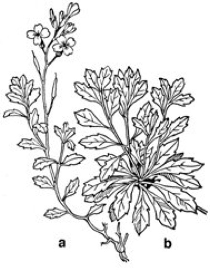 a blühender, b unfruchtbarer Sproß von Aubrieta deltoidea