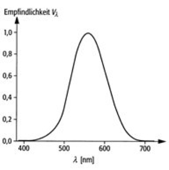 spektrale Augenempfindlichkeit V in Abhängigkeit von der Wellenlänge λ
