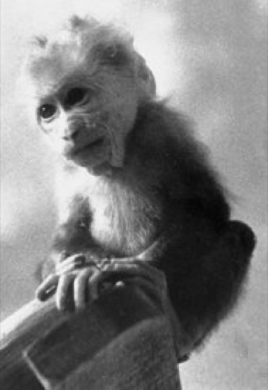 Bärenmakak, Stummelschwanzmakak, Macaca (Lyssodes) arctoides (syn. Macaca speciosa), kurzschwänziger Affe ( ä vgl. Abb. ) mit dunkelbraunem Fell, Kehlsack und haarlosem Gesicht mit schwarzen und roten Hautbezirken; in mehreren Unterarten von Südostasien bis Südchina verbreitet. Bärenmakaken leben in Gruppen von 5–40 Individuen in dichten Wäldern, sind tagaktiv, bewegen sich auf Bäumen sowie am Boden fort und ernähren sich sowohl von Pflanzenkost (Früchte, Blüten, Knospen, Samen) als auch von Kleintieren. Aufgrund von zahlreichen Verhaltensstudien (überwiegend in Gefangenschaft, kaum Feldbeobachtungen) weiß man, daß Bärenmakaken über ein besonders ausgeprägtes Sozialverhalten (z. B. Rangordnung, Konfliktverhalten, Grooming) verfügen. Makaken.