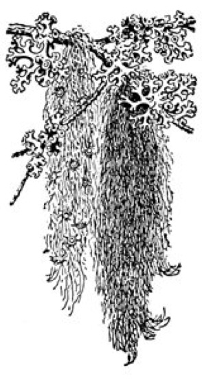 Bartflechten, an Bärte erinnernde, lang hängende bis kurz abstehende Strauchflechten ( vgl. Abb. ) mit fadenartigen, gewöhnlich reich verzweigten, meist grünlichen oder braunen Lagerabschnitten, vor allem zu den Gattungen Usnea, Bryoria und Alectoria (Alectoriaceae) gehörend. Bartflechten kommen vor allem in kühlfeuchten, nebelreichen Lagen vor; für ihren Wasserhaushalt ist die Aufnahme von Wasserdampf von großer Bedeutung; wegen ihrer großen Empfindlichkeit gegenüber Luftverunreinigungen (Bioindikatoren) und mikroklimatischen Veränderungen durch intensive forstliche Nutzung der Wälder stark zurückgehend. Nadelwälder können an klimatisch geeigneten Stellen durch reichen Bartflechten-Bewuchs graugrünlich gefärbt sein. Flechtenstoffe; Flechten I .