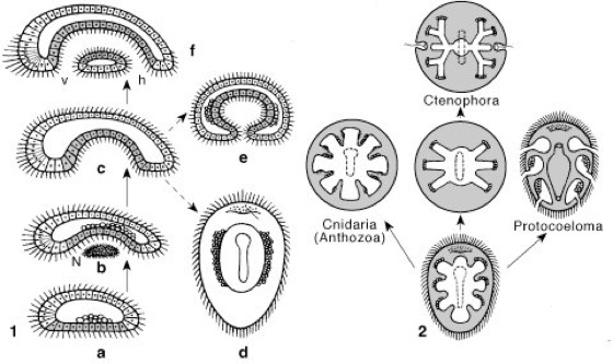 Lit.:Grell, K.G. (1971): Trichoplax adhaerens F.E. Schulze und die Entstehung der Metazoa. Naturw. Rdsch 24, 160–161. Haeckel, E. (1874): Die Gastraea-Theorie. Jenaische Z. Naturw. Jägersten, G. (1955): On the Early Phylogeny of the Metazoa. Zool. Bidrag Uppsala 30. Jägersten, G. (1959): Further Remarks on the Early Phylogeny of the Metazoa. Zool. Bidrag Uppsala 33. Siewing, R. (1976): Probleme und neuere Erkenntnisse in der Großsystematik der Wirbellosen. Verh. Dtsch. Zool. Ges. 69, 59–83.