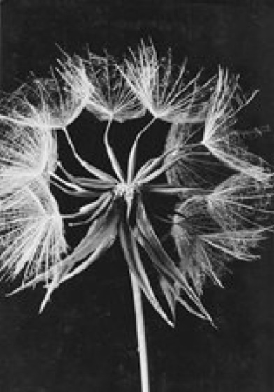 Bocksbart (Tragopogon spec.); oben: Fruchtstand; jede Frucht hat ihren eigenen Flugapparat.