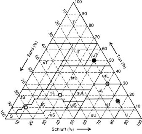 Dreiecksdiagramm der Bodenarten (Körnungsklassen)nach dem Vorschlag der Ämter für Bodenforschung