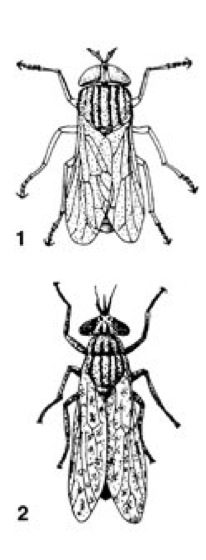 1 Rinderbremse (Tabanus bovinus), 2 Regenbremse (Chrysozona pluvialis)