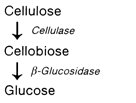 Cellulose w [von neulatein. cellulosus = aus Zellen bestehend], Zellulose, aus 500–5000 unverzweigten 4-β-Glucose-Einheiten aufgebautes wasserunlösliches Polysaccharid ( vgl. Abb. ), das neben Hemicellulosen und Pektinen den Hauptbestandteil der Gerüstsubstanz pflanzlicher Zellwände (Zellwand) und des Mantels der Manteltiere bildet. Intramolekulare Wasserstoffbrücken ( vgl. Abb. ) zwischen den 3-Hydroxylgruppen und den Ringsauerstoffatomen benachbarter Glucosereste verhindern die freie Drehbarkeit der glykosidischen Bindungen (Glykoside), was zu einer linearen Versteifung des Makromoleküls führt, die durch die annähernd gleiche Ausrichtung aller Glucoseringe in einer Fläche charakterisiert ist. Die durch intermolekulare Wasserstoffbrücken zwischen den 6-Hydroxylgruppen und den Sauerstoffbrücken der glykosidischen Bindungen paralleler Ketten bedingte Anlagerung von 60 bis 70 Cellulose-Ketten führt zu den für pflanzliche Zellwände charakteristischen Mikrofibrillen (Elementarfibrillen). Cellulose bildet sich schrittweise durch Anbau von Glucoseresten aus UDP-Glucose (Synthese: vgl. Infobox ). Der biologische Abbau von Cellulose ( vgl. Abb. ) wird durch Cellulase katalysiert. Chemisch wird Cellulose durch Säuren zu Glucose abgebaut und damit industriell in eine vergärbare Form übergeführt (Holzverzuckerung). – Cellulose ist der mengenmäßig bedeutendste Naturstoff. Laubbäume (Laubhölzer) und Nadelbäume (Nadelhölzer) bestehen zu ca. 50% aus Cellulose. Jährlich werden durch Pflanzen ca. 10 Billionen Tonnen Cellulose synthetisiert (Biomasse, Produktion). Der in Form von Cellulose gebundene Kohlenstoff der Pflanzen entspricht etwa 50% des in der gesamten Erdatmosphäre als CO2 (Kohlendioxid) vorliegenden Kohlenstoffs (Kohlenstoffkreislauf). Cellulose hat große technische und wirtschaftliche Bedeutung. Baumwolle (Baumwollpflanze), Jute (Corchorus), Flachs (Lein) und Hanf sind fast reine Cellulose. Technisch wird Cellulose vorwiegend aus Holz oder Stroh gewonnen und kommt als Zellstoff in den Handel. Die größten Mengen werden von der Papier- und Textilindustrie verbraucht. In der Biochemie findet reine Cellulose oder chemisch modifizierte Cellulose (z. B. DEAE-Cellulose, CM-Cellulose, Phospho-Cellulose) ausgedehnte Verwendung als Adsorbens bei chromatographischen Trennungsverfahren (Anionenaustauscher, Adsorptionschromatographie, Austauschchromatographie, Chromatographie). Anisotropie, Ballaststoffe, Bodenorganismen, Biomoleküle, Biopolymere, Braconnot (H.), celluloseabbauende Mikroorganismen, Cellulose-Synthase, Cellulosom, Cuticula, Dermatophyten, Freudenberg (K.J.), Glucane, Gummi, Haworth (W.N.), Hemicellulosen, Karrer (P.), Lignin, Mineralisation, Nahrungsspezialisten, Payen (A.), Quellung, Seescheiden, Sporocytophaga, Streuabbau, Verdauung; Kohlenhydrate II, Zellwand.