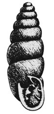 Moosschraube (Chondrina avenacea), Gehäuse etwa 8 mm hoch