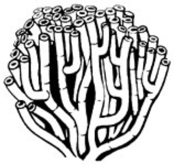 Cladocora w [von *clado –, griech. kōra = Koralle], Gattung der Steinkorallen; Cladocora cespitosa (Rasenkoralle; vgl. Abb. ) ist eine häufige Mittelmeerart mit kleinen, braunen Polypen, die polsterförmige Kolonien bilden, flache "Rasen", bis 50 cm; meist ab 10 m Tiefe.