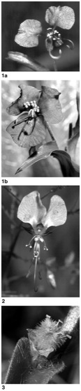 Verschiedene Blütentypen. 1a Commelina spec., 1b Commelina coelestis, 2 Aneilema spec. (Ostafrika), 3 Cyanotis spec. (Ostafrika)