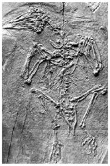 Confuciusornis m [nach dem chinesischen Philosophen Konfuzius, griech. ornis = Vogel], Urvogelgattung aus der festländischen Yixian-Formation aus der Provinz Liaoning (Nordost-China). Bei der Erstbeschreibung von Confuciusornis sanctus (1995) zunächst als Jura-Vogel angesehen (ca. 145 Mio. Jahre und damit etwa gleich alt wie Archaeopteryx), gilt Confuciusornis nach neuen radiometrischen Datierungen als kreidezeitlich (Unter-Kreide, ca. 124 Mio. Jahre). Die Fundschichten bestehen aus einer Abfolge von Süßwassersedimenten und vulkanischen Gesteinen. Von Confuciusornis ( vgl. Abb. ) wurden Hunderte von z. T. sehr gut erhaltenen Exemplaren bekannt (in natürlicher Lage, mit Weichkörpererhaltung), was darauf hindeutet, daß sie in der Nähe des Einbettungsorts lebten und einem Vulkanausbruch zum Opfer fielen. 1999 wurde eine zweite Art (Confuciusornis dui) beschrieben. Merkmale: typische Vogelfedern mit asymmetrischer Fahne (wie bei Archaeopteryx, Hinweis auf Flugfähigkeit), einige Tiere (wahrscheinlich Männchen) mit langen Schwanzfedern; hochgradig gekrümmte Klauenfüße mit rückwärtiger Zehe (Hinweis auf Baumkletterer). Gegenüber Archaeopteryx abgeleitete Merkmale: vollständige Zahnreduktion, Besitz eines Hornschnabels ( vgl. Infobox ), kurzer Schwanz (Pygostyl), vogelartige Skelettmechanik zum Flügelfalten. Wie bei Archaeopteryx war eine 3fingrige Hand mit nicht verwachsenen Mittelhandknochen ausgebildet. Confuciusornis ist ein Stammlinienvertreter der heutigen Vögel. Er lebte etwa zur selben Zeit wie die befiederten Dinosaurier(Sinosauropteryx,Caudipteryx, Protarchaeopteryx) und der Urvogel Liaoningornis, die ebenfalls in Liaoning gefunden wurden.